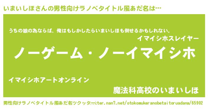 | 胡散臭い通販商品みたいなあだ名 | 『モンドセレクションを受賞したイリジウム磁石…その名も「いまいしほ」』 |