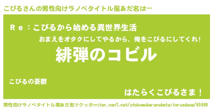 | ヒーロー風カッコイイあだ名 | 『超時空戦士コビル』『慈愛の使者こびる』 |
