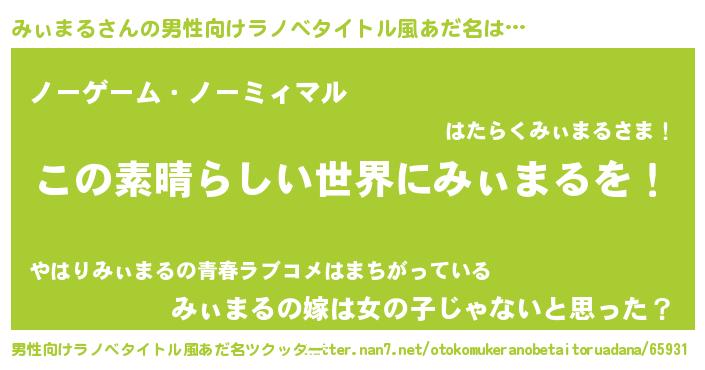 みぃまるさんの男性向けラノベタイトル風あだ名をツクッター!