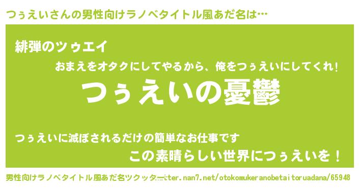 | ヘコむあだ名 | 『つぅっふぃ~』『つぅえい(震え声)』 |