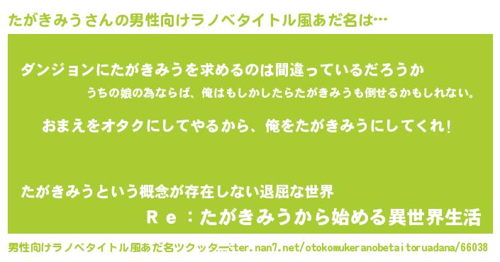 | ヒーロー風カッコイイあだ名 | 『正義の使者たがきみう』『魔戒騎士タガ』 |