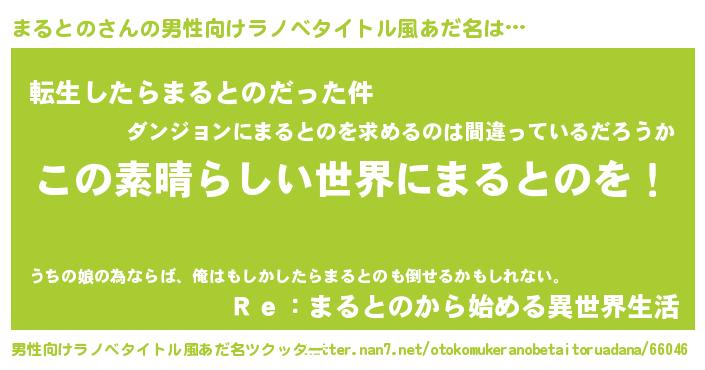 | 女子向けラノベタイトル風あだ名 | 『乙女ゲームの破滅フラグしかない悪役まるとのに転生してしまった…』 |