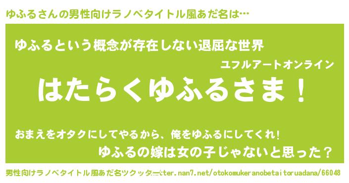 | ポケモン風あだ名 | 『ユフゴンZ』『ゼニユフ』『ヒユフル』 |