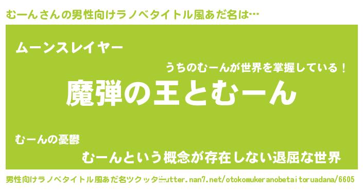 | 意味不明あだ名 | 『住所不定無職むーん(85歳)』『自称むーん』 |