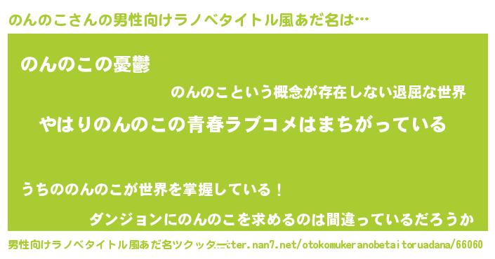 | 女子向けラノベタイトル風あだ名 | 『のんのこの雑貨屋さん』 |