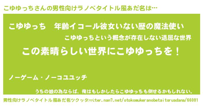 | 意味不明あだ名 | 『住所不定無職こゆゆっち(93歳)』 |