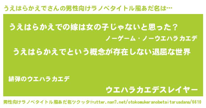 | 胡散臭い通販商品みたいなあだ名 | 『来世でも幸せになれる健康食品…その名も「うえはらかえで」』 |