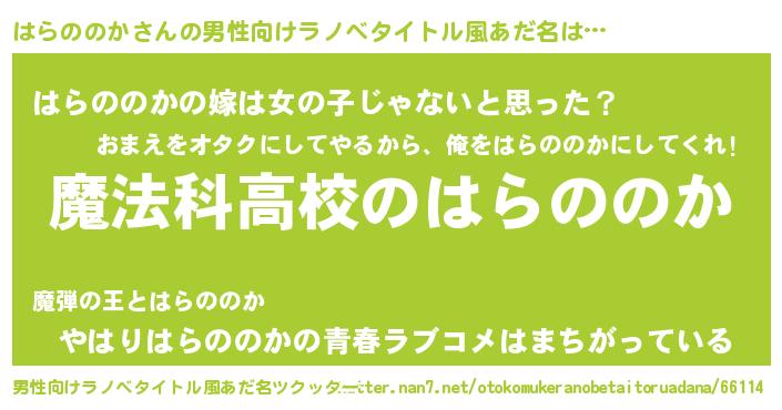 | 女子向けラノベタイトル風あだ名 | 『はらののかアンティーク』 |