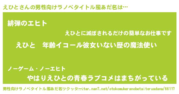 | 女子向けラノベタイトル風あだ名 | 『えひとの玉の輿計画!』 |