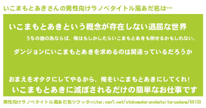 | 女子向けラノベタイトル風あだ名 | 『いこまもとあきは平凡を望む』 |