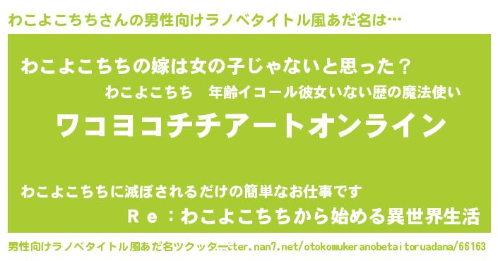 | 胡散臭い通販商品みたいなあだ名 | 『億万長者になれるブレスレット…その名も「わこよこちち」』 |