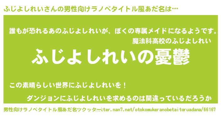 女子向けラノベタイトル風あだ名 | 『ふじよしれい姫と円卓の騎士』 |
