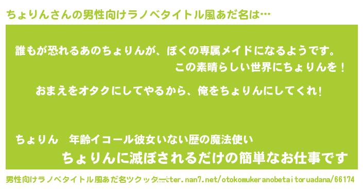 | 女子向けラノベタイトル風あだ名 | 『ちょりん恋絵巻』 |