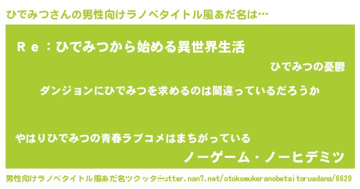 ひでみつさんの男性向けラノベタイトル風あだ名をツクッター!