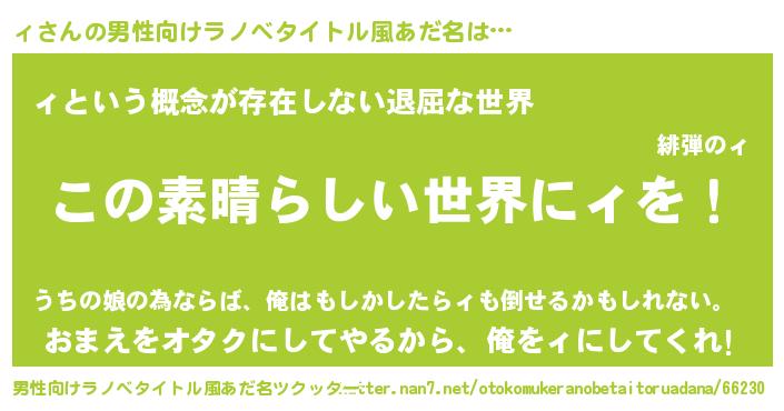| 女子向けラノベタイトル風あだ名 | 『悪役ィに転生したようですが、知った事ではありません』 |