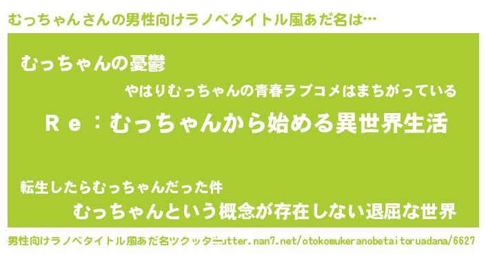 | ヘコむあだ名 | 『むっにゅー』『むっちゃん(小並感)』 |