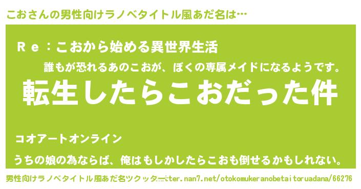 | 意味不明あだ名 | 『なめこ科こお属』『自称こお』 |