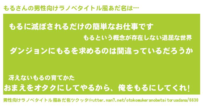 | 胡散臭い通販商品みたいなあだ名 | 『信頼と実績のペンダント…その名も「もる」』 |