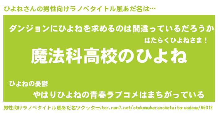 | ヒーロー風カッコイイあだ名 | 『ウルトラ戦士ヒヨネ』『魔戒騎士ヒヨ』 |