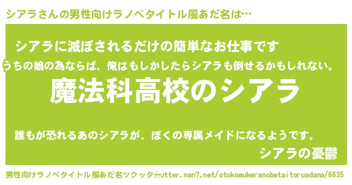 | 女子向けラノベタイトル風あだ名 | 『シアラアンティーク』『シアラの婚約者』 |