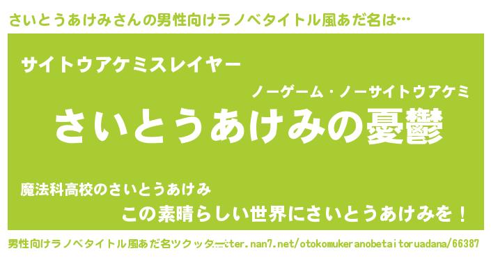 | 胡散臭い通販商品みたいなあだ名 | 『必ず成功する水晶球…その名も「さいとうあけみ」』 |