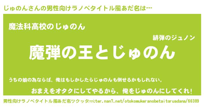 | 女子向けラノベタイトル風あだ名 | 『乙女ゲームの破滅フラグしかない悪役じゅのんに転生してしまった…』 |