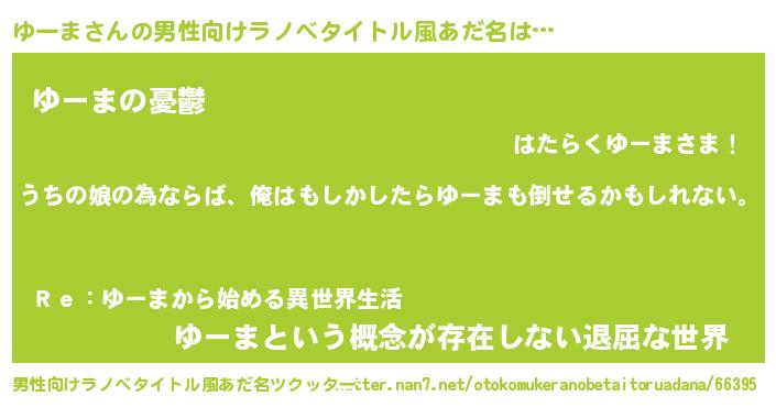 | 胡散臭い通販商品みたいなあだ名 | 『世界が平和になる高級そうな絵画…その名も「ゆーま」』 |