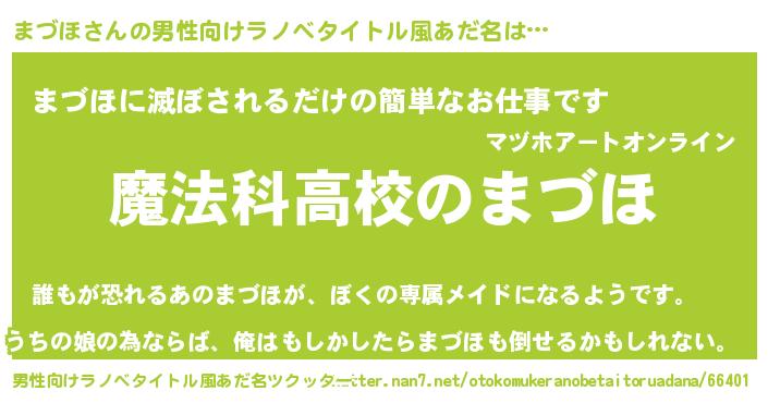 | 女子向けラノベタイトル風あだ名 | 『まづほなんてお断りですっ。』 |