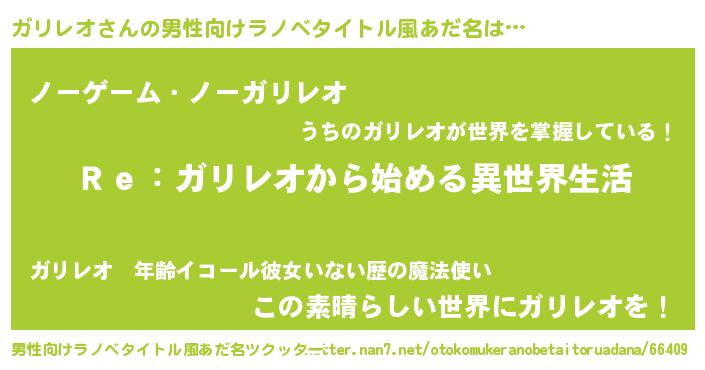 | 胡散臭い通販商品みたいなあだ名 | 『テレビで話題のアガリクス…その名も「ガリレオ」』 |