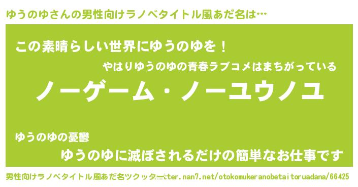 | 女子向けラノベタイトル風あだ名 | 『死神ゆうのゆの再婚』 |