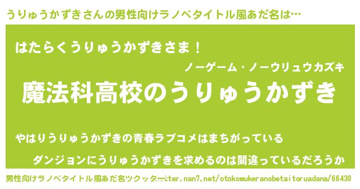 | 女子向けラノベタイトル風あだ名 | 『うりゅうかずきなんてお断りですっ。』 |