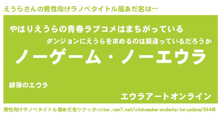 | ヘコむあだ名 | 『なまこ酢』『えうにゅー』『えうお』 |