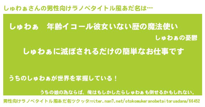 | 意味不明あだ名 | 『なめこ科しゅわぁ属』 |