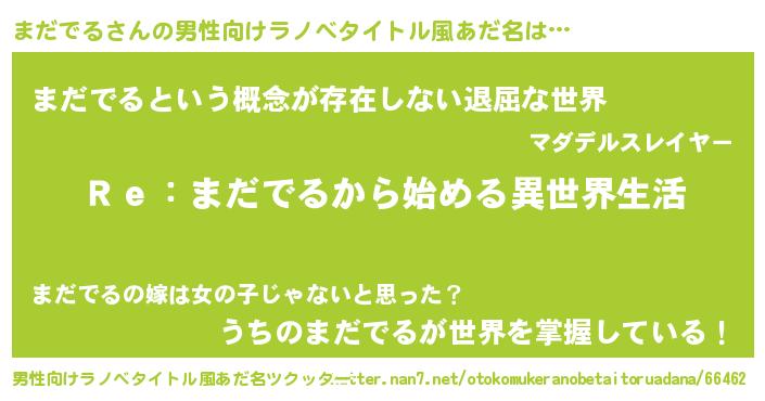 女子向けラノベタイトル風あだ名 | 『闇のまだでる』 |
