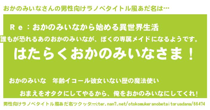 | ヘコむあだ名 | 『おかのみいな(震え声)』『おかぷりん』 |