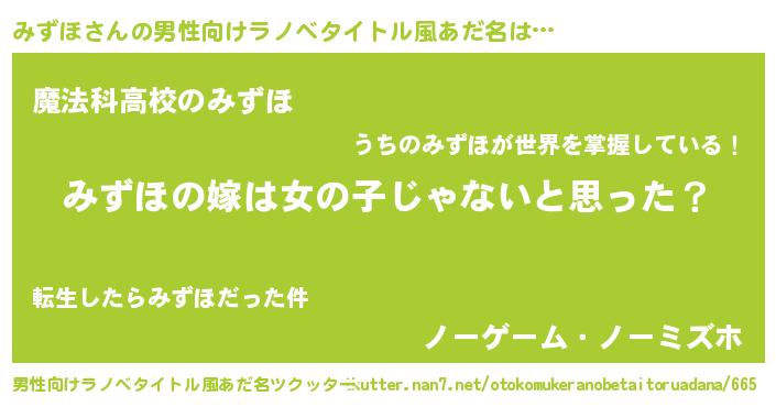 | ヒーロー風カッコイイあだ名 | 『炎刃騎士ミズ』『超時空戦士ミズホ』 |
