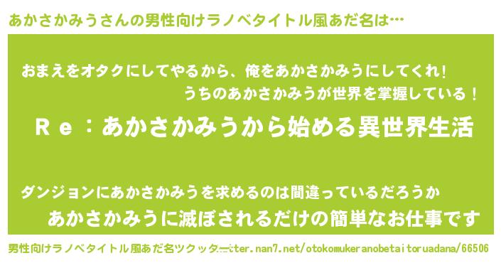 | 女子向けラノベタイトル風あだ名 | 『あかさかみうストレイドッグス』 |