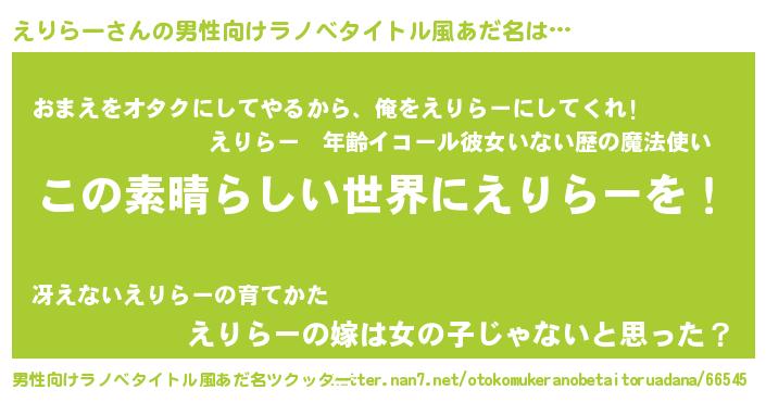 | 意味不明あだ名 | 『住所不定無職えりらー(62歳)』 |