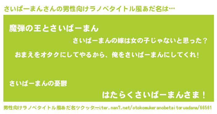| 胡散臭い通販商品みたいなあだ名 | 『100人中100人が認めたマグネット磁石…その名も「さいばーまん」』 |