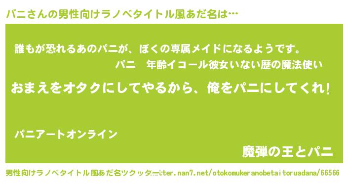 | 女子向けラノベタイトル風あだ名 | 『パニ恋絵巻』『パニの玉の輿計画!』 |