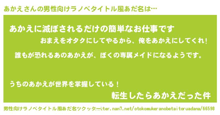 ヘコむあだ名 | 『あかえ(遠い目)』『あかにゅー』 |