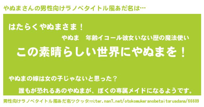 | 意味不明あだ名 | 『住所不定無職やぬま(53歳)』『自称やぬま』 |