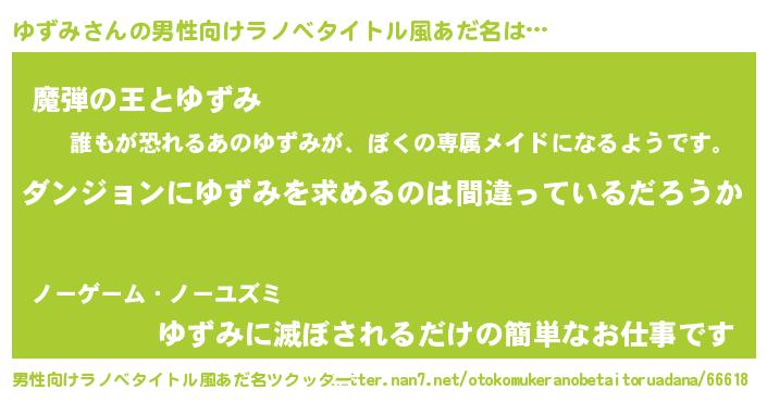 | 胡散臭い通販商品みたいなあだ名 | 『信頼と実績のサプリメント…その名も「ゆずみ」』 |