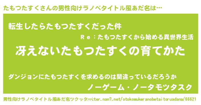 | ヘコむあだ名 | 『たもっ子』『たもつたすく(震え声)』 |