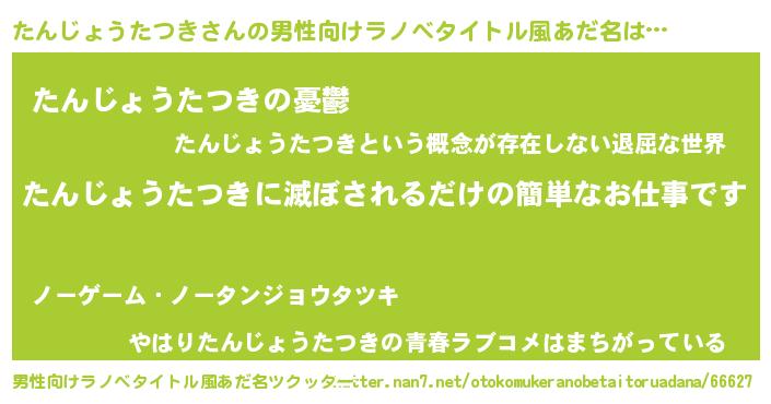 | ヒーロー風カッコイイあだ名 | 『スーパータンジョウタツキ』 |