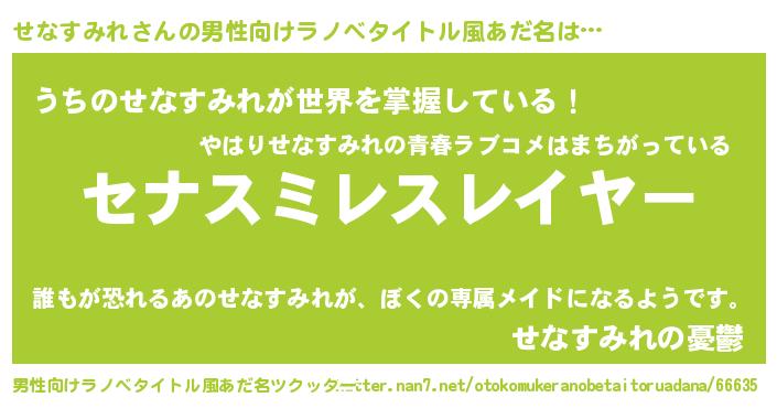 | 胡散臭い通販商品みたいなあだ名 | 『必ず成功する霊験あらたかなお札…その名も「せなすみれ」』 |