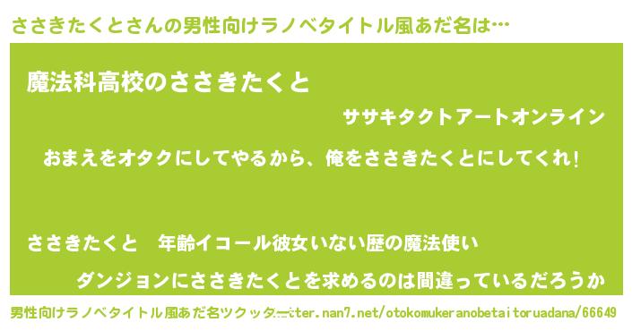 | ヒーロー風カッコイイあだ名 | 『正義の使者ささきたくと』 |