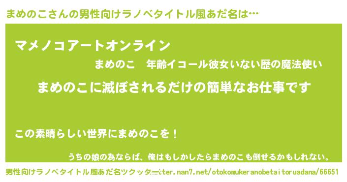 | ファンタジー風あだ名 | 『マメフェル』『エターナルマメノコー』 |