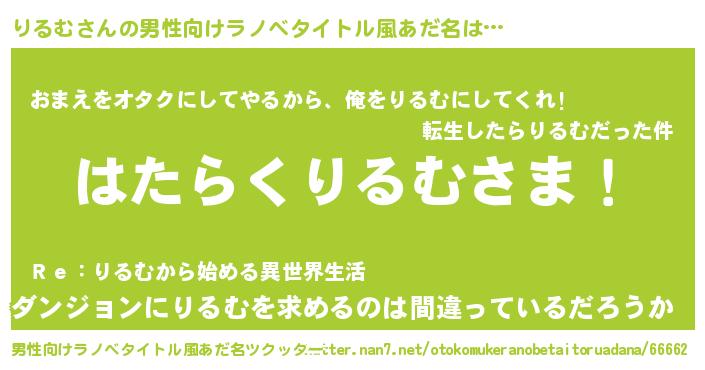 | 料理風あだ名 | 『栗とりるむのマフィン』『りるむごはん』 |