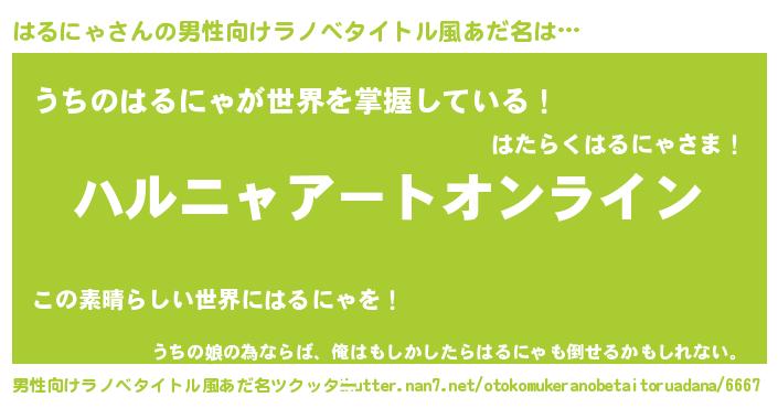 | 胡散臭い通販商品みたいなあだ名 | 『億万長者になれる水晶球…その名も「はるにゃ」』 |